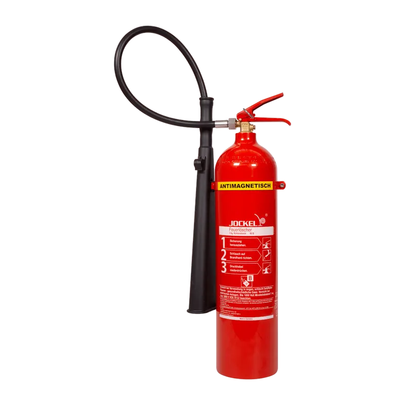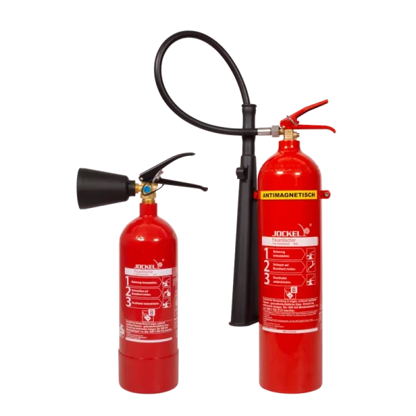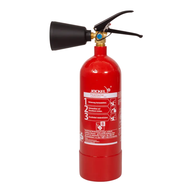 Jockel portable CO₂ fire extinguisher (2 or 5 kg), ideal for class B fires in electronic equipment and laboratories. Leaves no residue and provides fast, clean extinguishing.