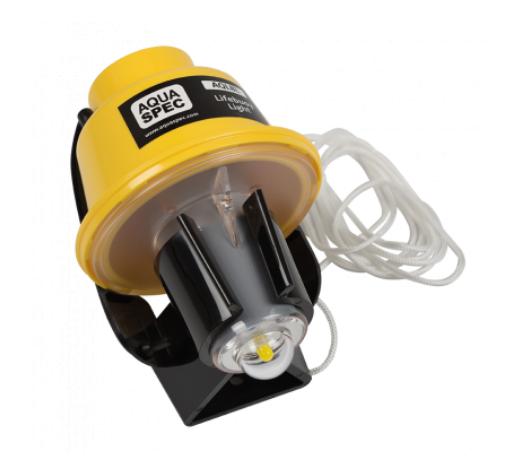 Aqua Spec AQLBL LED light for lifebuoy, activated by contact with water. MED/SOLAS approved with 5-year maintenance-free battery.